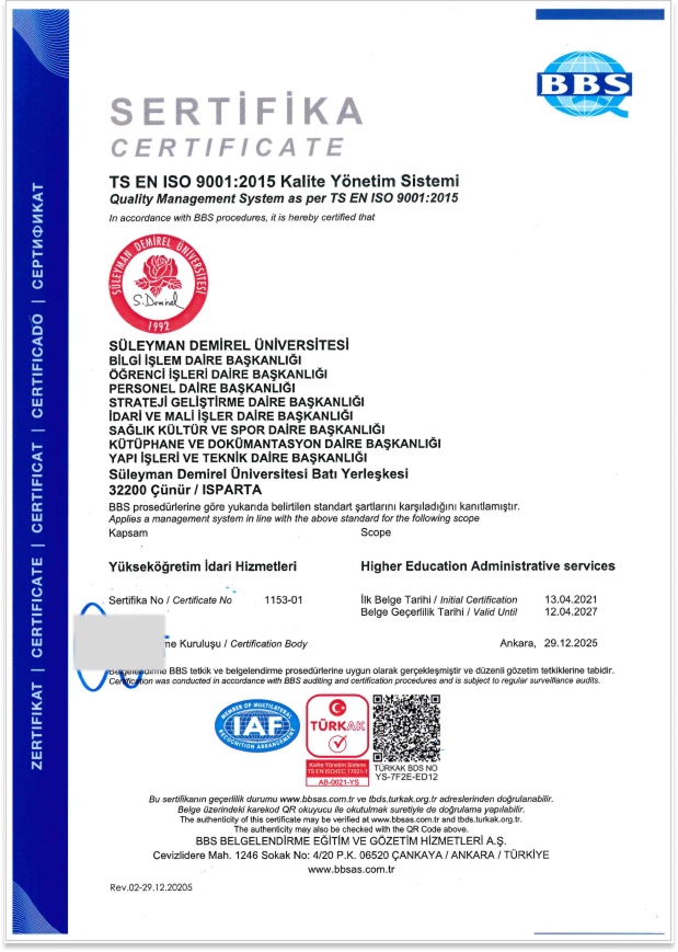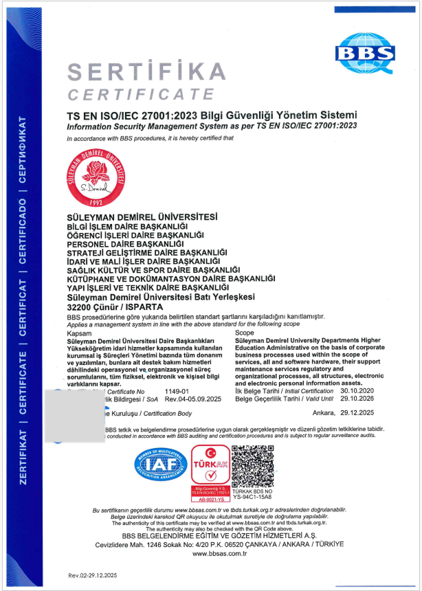 | ISO 9001 KALİTE YÖNETİM SİSTEMİ | ISO 27001 BİLGİ GÜVENLİĞİ YÖNETİM SİSTEMİ |